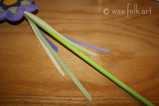 1/4″ grosgrain ribbon in 3 colors each 24″ long (green, yellow and a color to match the outer petal.)