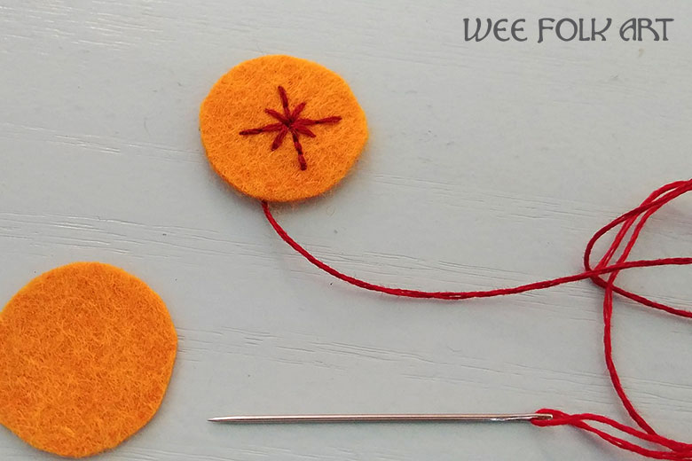 Optional: Embroider a star design on the small gold felt circles.
