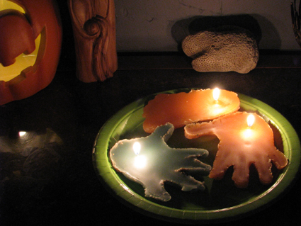 Here is a fun, quick handprint craft project that can add to your spooky Halloween decor. Make your own recycled wax handprint sand candles. This afternoon we made handprint sand candles using the kids…