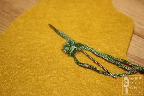When embroidering on felt, I use 6 strands of floss. It you are embroidering the stitch on a lighter weight fabric, reduce the number of strands.