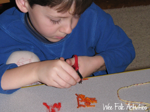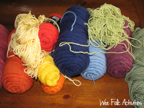 The kids had fun cutting up the yarn into little bits. A little yarn goes a long way!