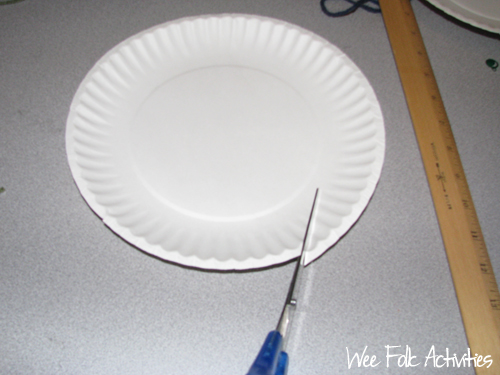I then took paper plates (regular card stock with a circle template would work too) and cut out the center circle.